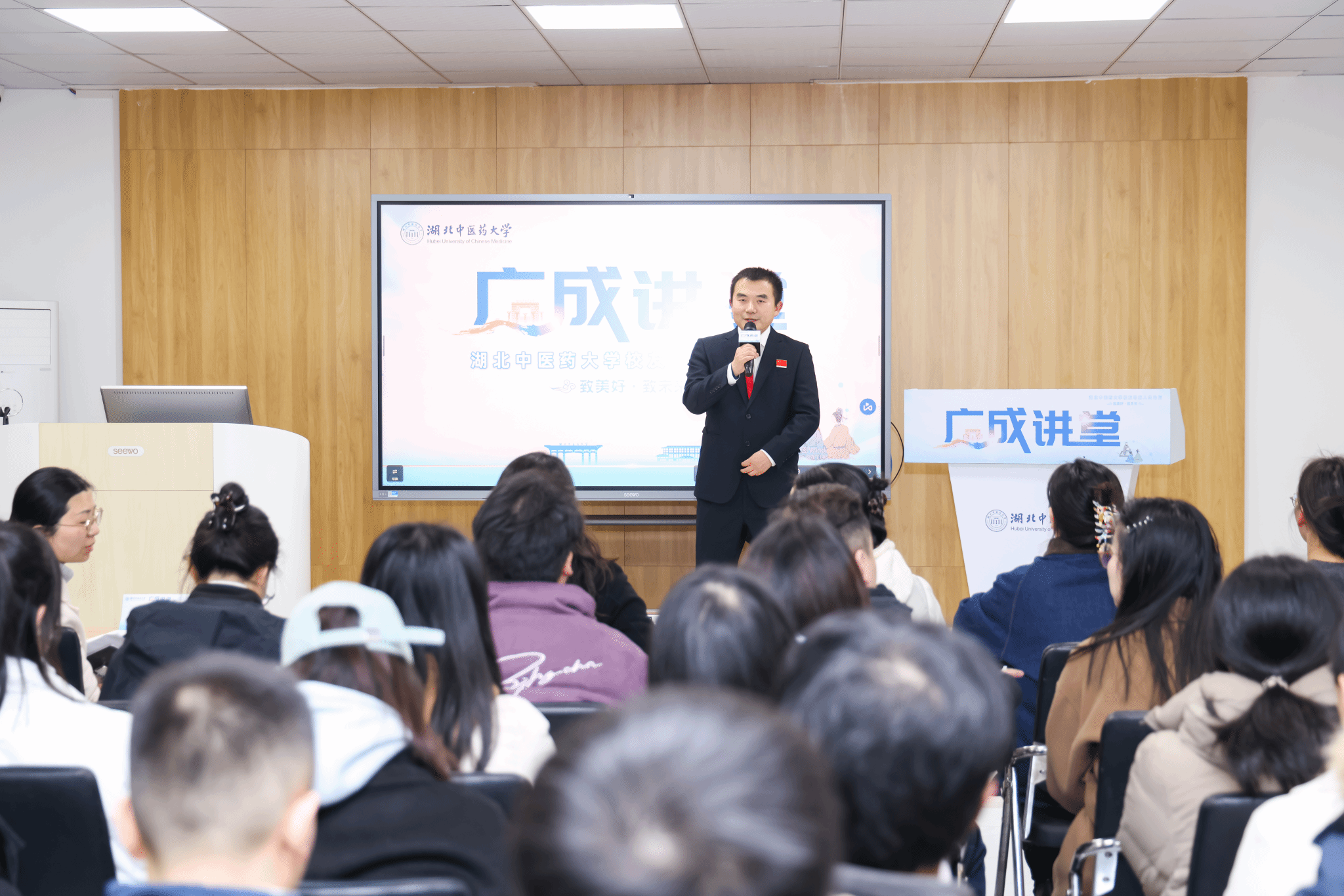 本网讯 12月30日,“广成讲堂”第十讲在黄家湖校区举行。湖北好人、2003级针灸推拿…