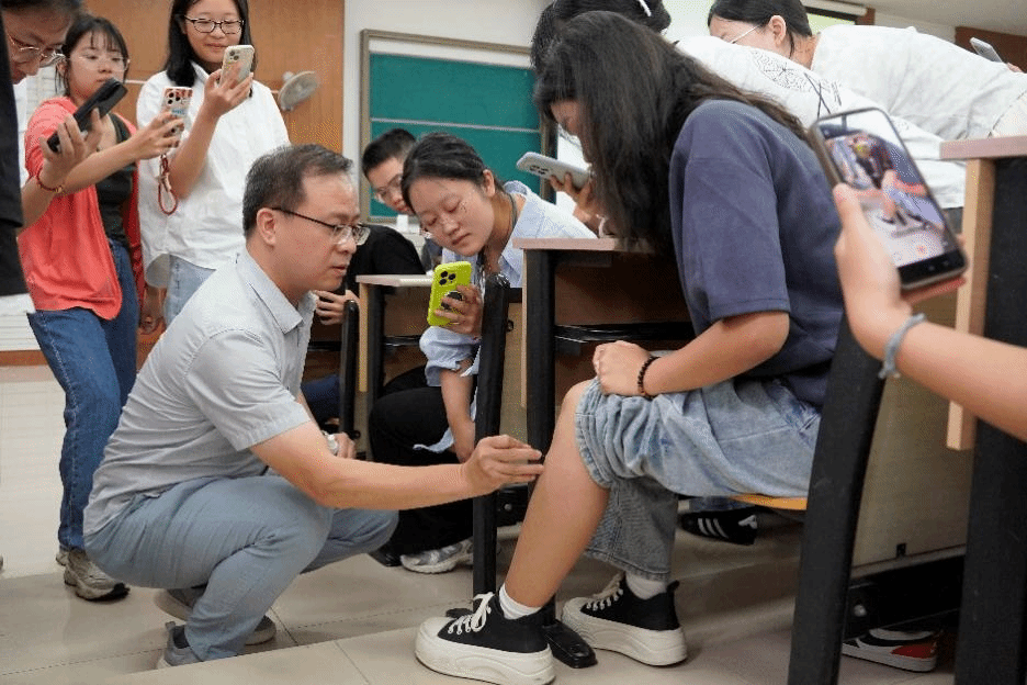 本网讯 “足三里穴在犊鼻下三寸,按下去有酸胀感才对!”“针刺消毒要严格遵循‘一…