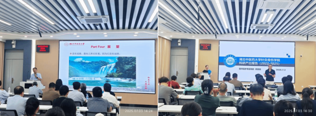 本网讯 为全面落实学校中医学一流学科建设安排,7月3日,437bwin必赢国际在黄家湖校区本草苑Y102智慧教室举行“中医学一流学科建设突破行动”学习提能分享会。会议邀请发展规划与学科建设办公室、图书馆负责人等作专题分享。活动由学院行政负责人主持,全体教职工参加活动。