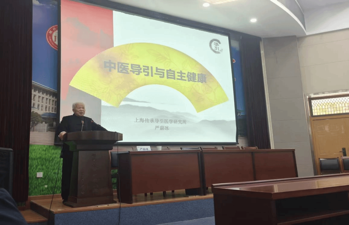 讲座伊始,严蔚冰教授紧扣党的二十大报告中 “推进健康中国建设” 的重要部署,强调保障人民健康的战略意义。他指出,中医养生智慧与新时代健康需求高度契合,千年前形成的 “法于阴阳、和于四时、天人相应、形神合一” 养生理念,与现代 “治未病” 健康观一脉相承。作为我国传统祛病健身的经典方法,导引术经历代医家实践印证,通过 “导气令和,引体令柔” 的核心机理,能有效激发生命自愈力,在慢性病调理、术后康复等领域具有独特价值。严教授结合临床案例详细阐释,导引术与针灸、药物协同使用可显著提升诊疗效果,长期习练更能实现 “骨正筋柔,气血以流” 的理想康养状态。