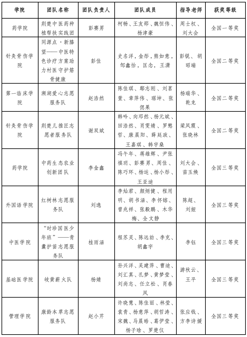 9月22日,中国研究生乡村振兴科技强农+创新大赛第二届乡村振兴志愿服务技能大赛全国总决赛在山东烟台落下帷幕,我校研究生队伍斩获全国一等奖1项、二等奖3项、三等奖5项,刘大会教授和周士权教授获评优秀指导教师,学校荣获优秀组织单位奖,获奖数量位居全国中医药院校第一、湖北省高校第一。